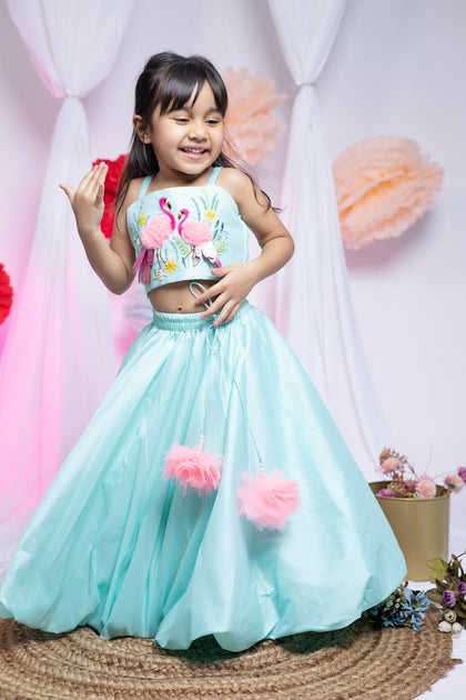 Flamingo Oasis Lehenga in sea green