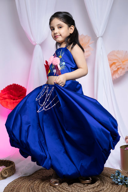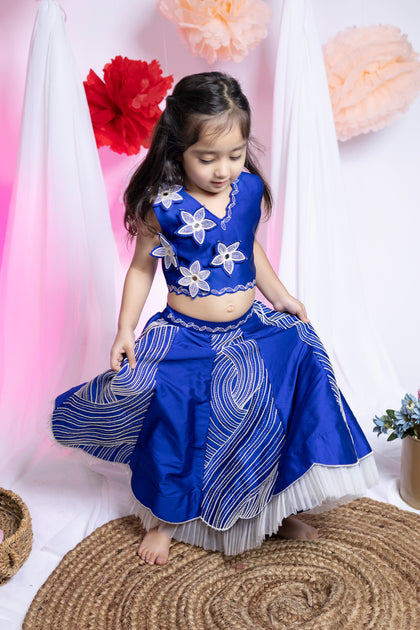 Flamingo Oasis Lehenga in Blue